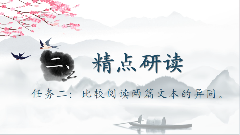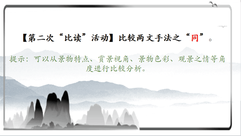 2.第二次“比读”活动:比较两篇文字之“同”。