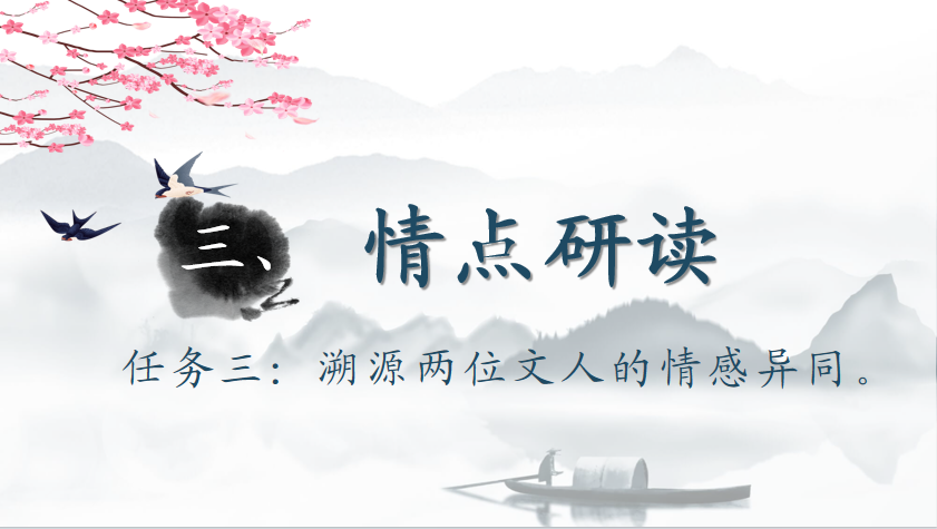 任务三:比较阅读两篇课文,溯源景中之情的异同。