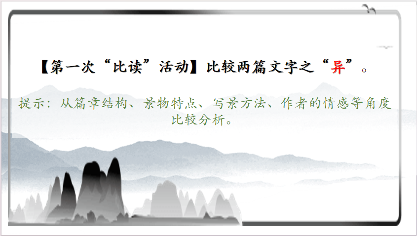 今日要继续学习山水美文,且是两篇文本联读学习,请同学们做好准备,继续迎接古文挑战。