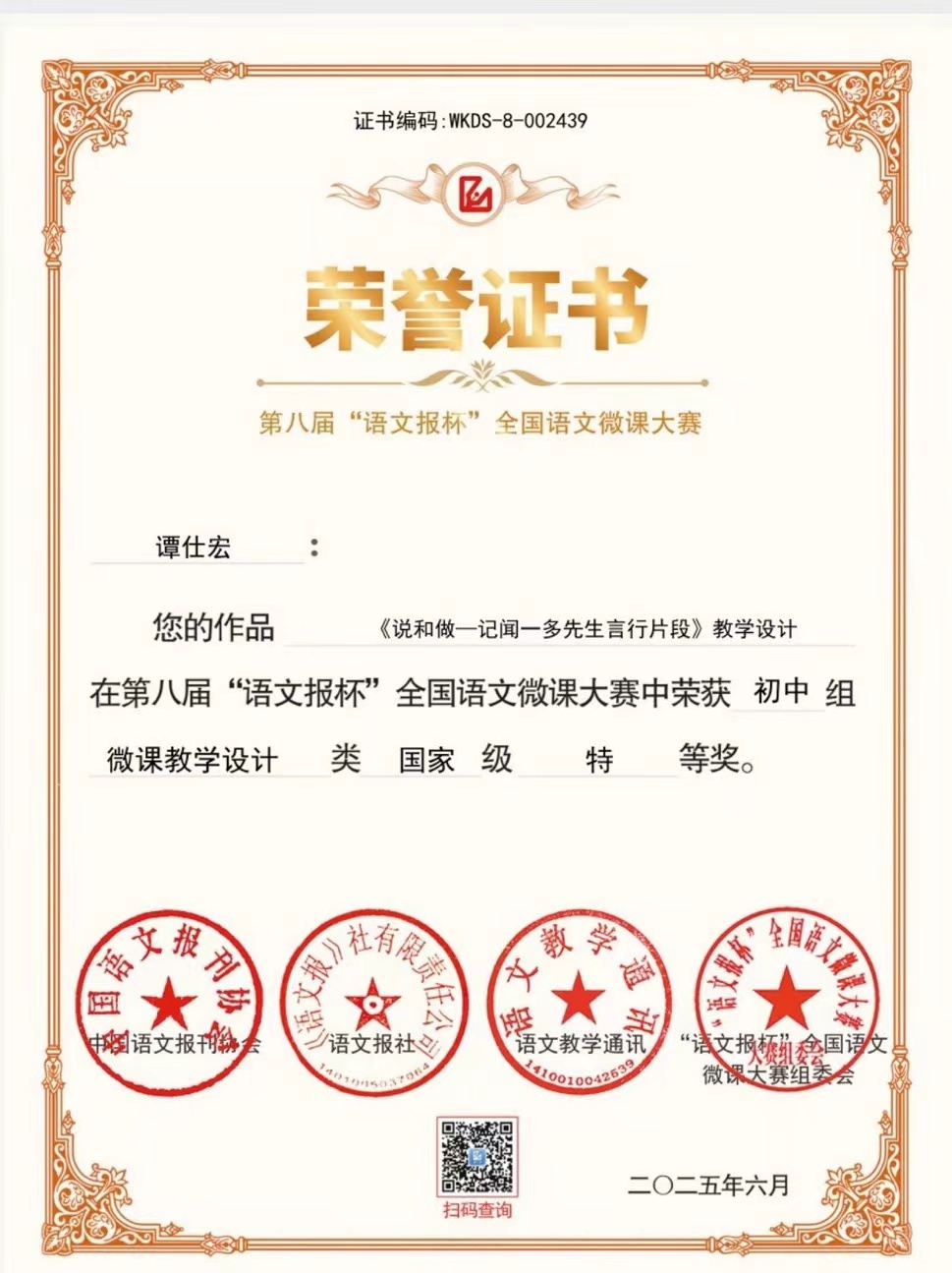《说和做-记闻一多先生言行片段》(在第八届“语文报杯” 全国语文微课大赛中荣获特等奖)